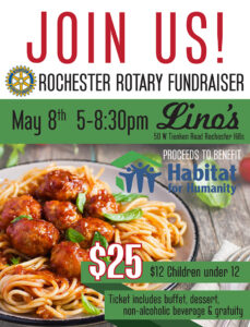 Join us for an awesome dinner for a great cause! The Rochester Rotary will be hosting a fundraiser dinner at Lino’s in Rochester Hills. Lino’s in Rochester Hills 50 W. Tienken Rd. May 8, 2018 5:00 – 8:30pm Proceeds benefit Habitat